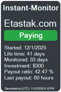 PAYMENT PROVED AMOUNT: $10 Txid: 0x788bcaf974f03502b3c680c59bb5b45f9de8d120490c078d7178de2251b0aa83 BLOCK: 72141108 TIME: Dec-19-2025 01:30:06 AM UTC FROM: 0x88dD216422DfdB40E31E172F6C8eC7F828254378 TO: 0x9be82D8e471354b17FAcAbD82DE9Ea1bcaed3fE2 Upayhyip got payment by Etastak Thank you Etastak